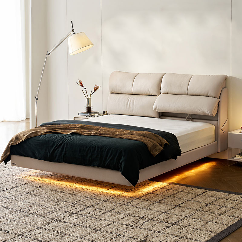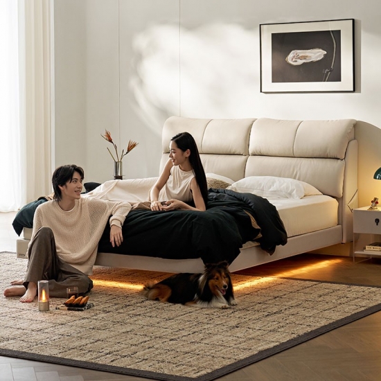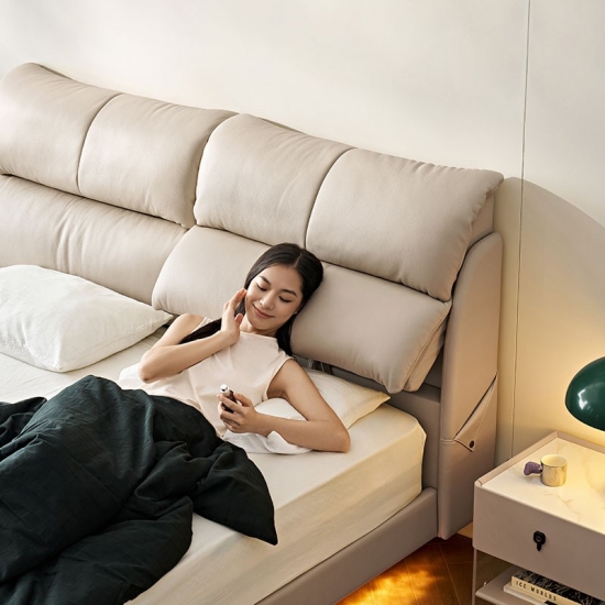 מיטת עור זוגית רכה עם מסגרת עץ PC808-A