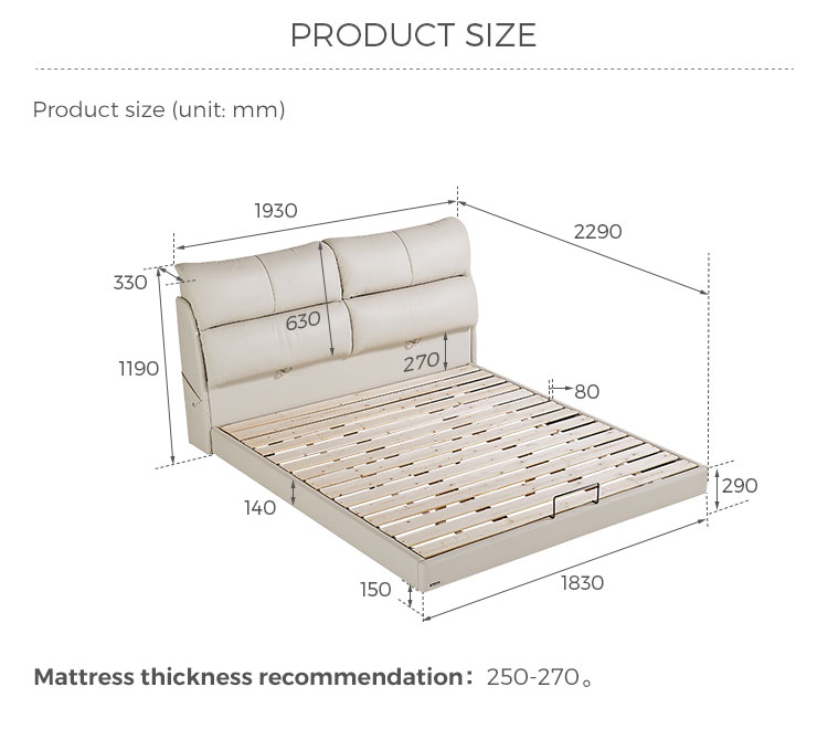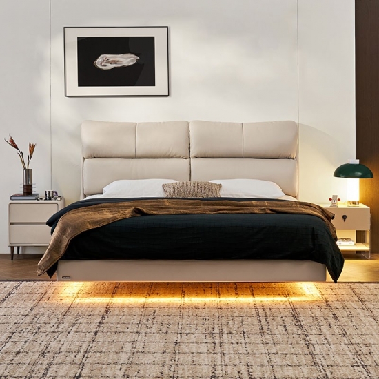 התענגו על גן עדן של רכות וסגנון עם מיטת העור המרופדת בצבע בז' שלנו. מיטה זו, שעוצבה להיות מרכז העניינים השליו של חדר השינה שלכם, משלבת תחושה מפוארת ומזמינה עם אסתטיקה מודרנית ונקייה. עיצוב מודרני מושלם לעיצובים שונים.
