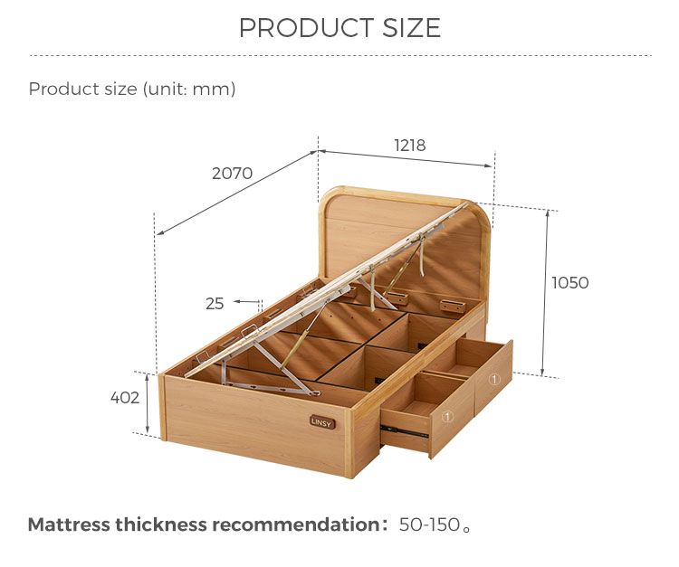 *פתרונות אחסון משולבים: תגידו שלום לעומס. מיטה זו כוללת אפשרויות אחסון מגוונות המותאמות לצרכים שלכם. בחרו מבין מגירות מרווחות מתחת למיטה המחליקות בצורה חלקה על מסילות מתכת.