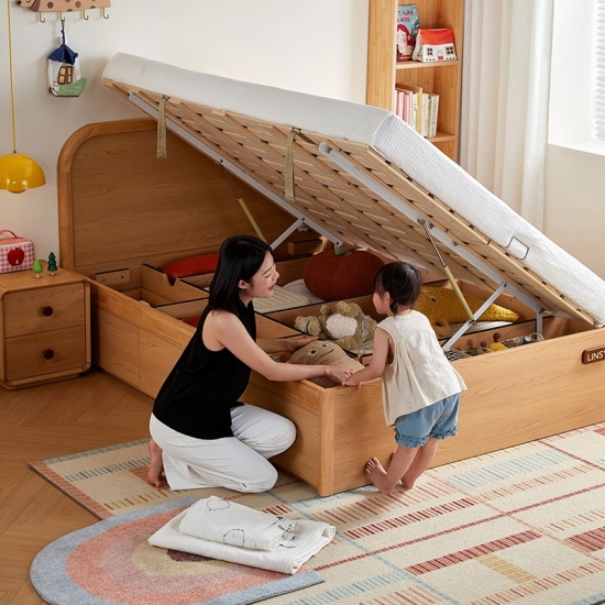 מיטת האחסון מעץ מלא שלנו, המיועדת לילדים גדלים, משלבת בצורה חלקה אומנות חזקה עם ארגון חכם. מיטה זו היא יותר מסתם מקום שינה; זוהי פתרון ריהוט מלא שעוזר לשמור על החדר מסודר, מרווח ומלא באפשרויות.