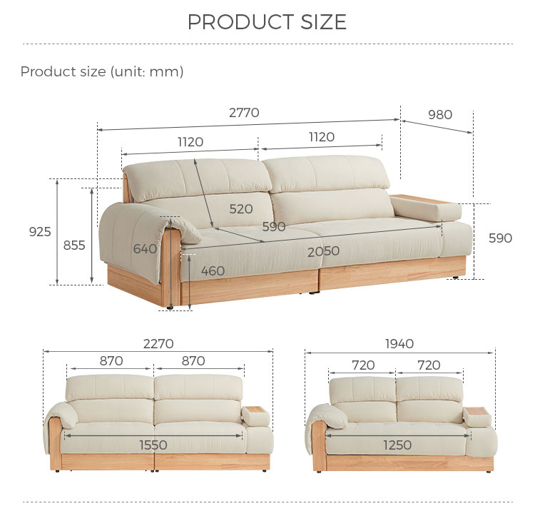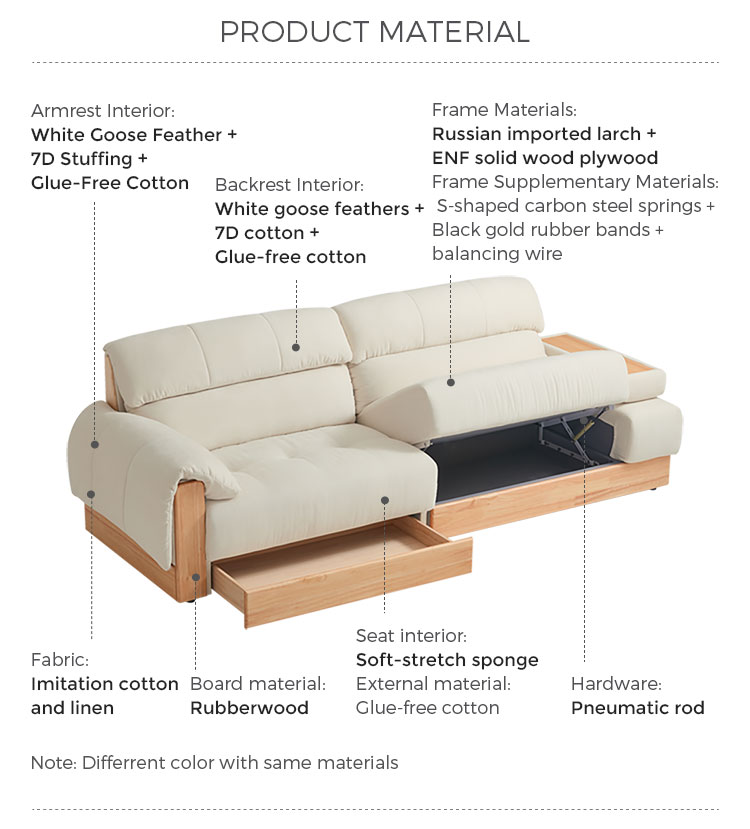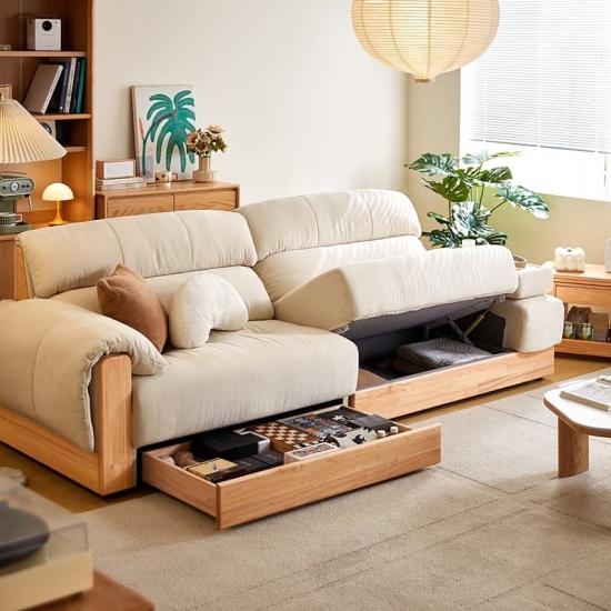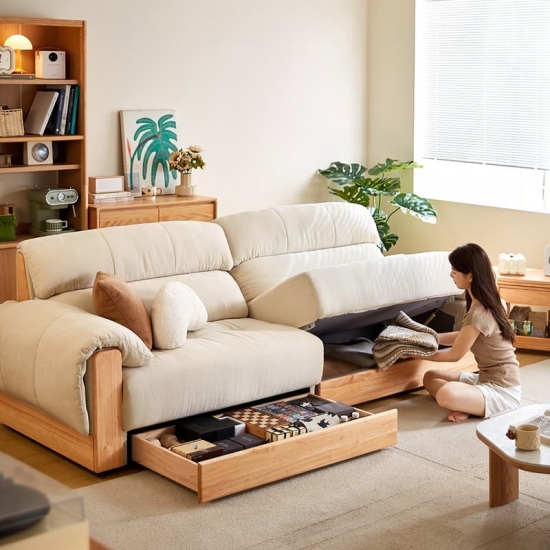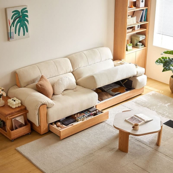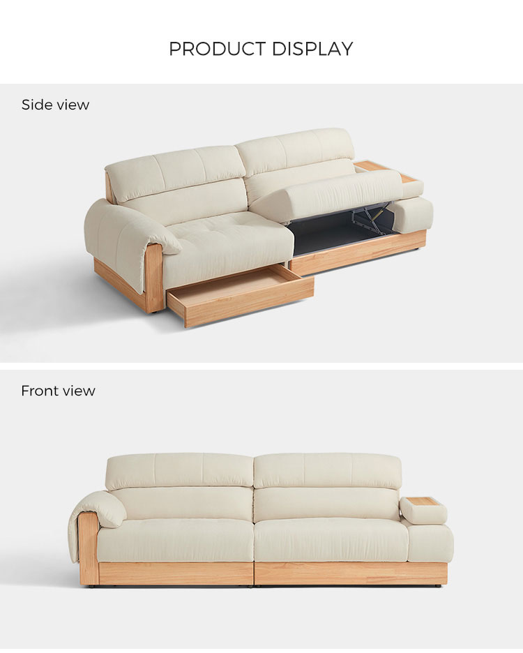 תאי אחסון משולבים: אזורי האחסון המרווחים, המוסתרים באופן דיסקרטי בתוך הכורסה או הבסיס, מושלמים לאחסון שמיכות, כריות, ספרים וחפצי מגורים חיוניים אחרים, ועוזרים לכם לשמור על סביבה נקייה מהעומס.
