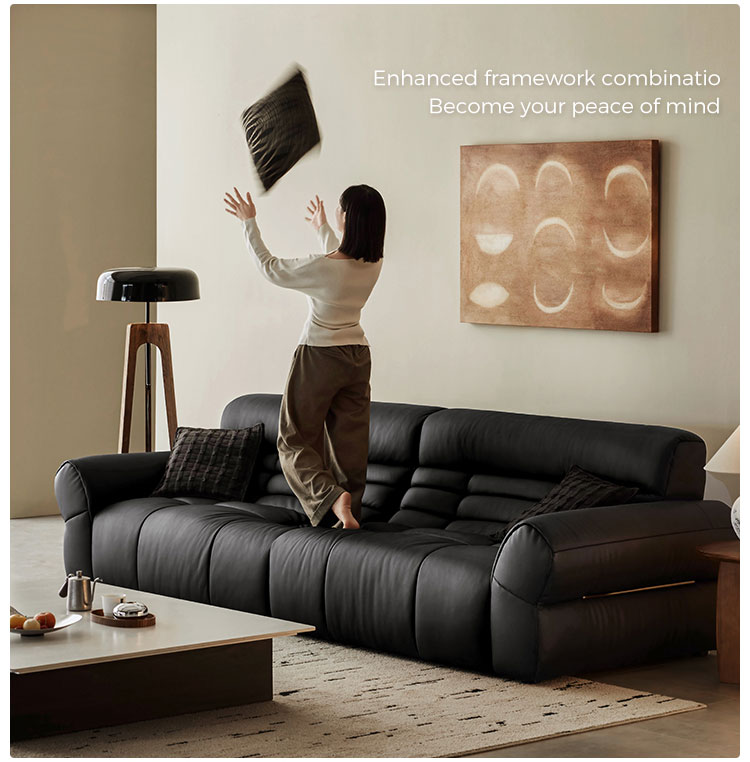 צרו אמירה נועזת בסלון שלכם עם ספת עור LINSY בצבע שחור עם קלידי פסנתר, שבה תחכום קלאסי פוגש עיצוב עכשווי. בהשראת הקווים החלקלקים של קלידי הפסנתר, ספה זו כוללת ריפוד עור שחור פרימיום מנוגד המסודר בדוגמה מתחלפת בולטת. כריות המושב העמוקות ותמיכת הגב הארגונומית מציעים נוחות מפוארת, בעוד שמסגרת העץ המלא מבטיחה יציבות מתמשכת.