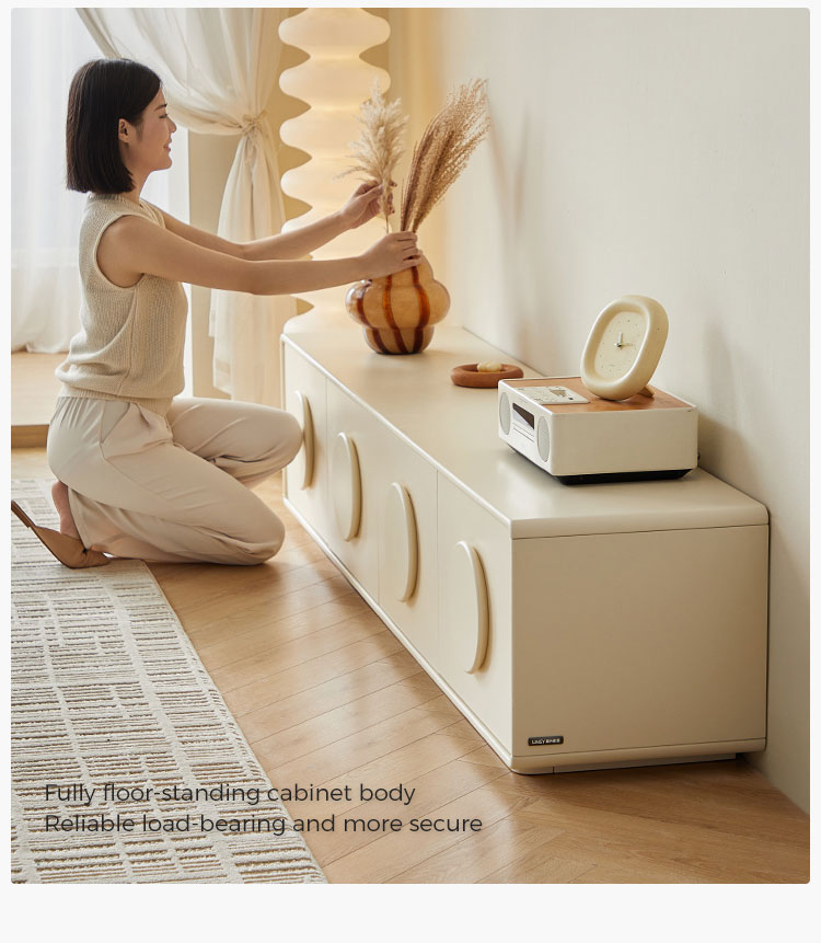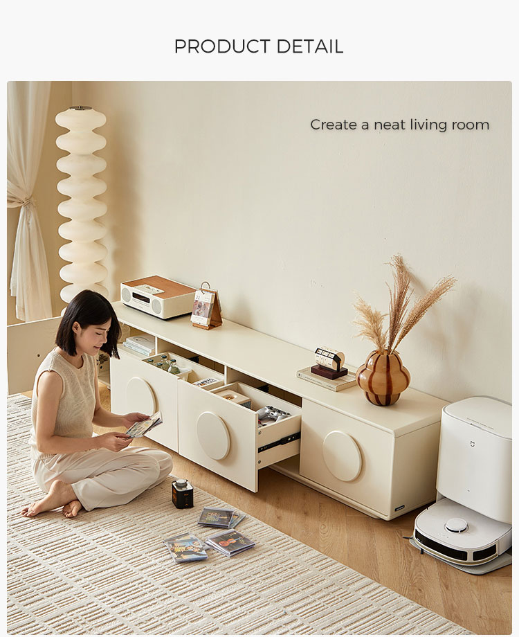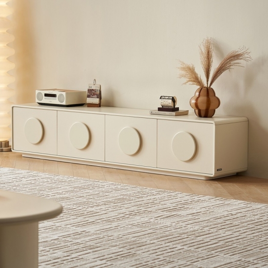 קונסולת טלוויזיה בצבע קרם רך זו, שנועדה לשדרג את חלל הבידור שלכם, משלבת מינימליזם בהשראה סקנדינבית עם אחסון פונקציונלי. הקווים הנקיים והגוון הנייטרלי החם שלה יוצרים בסיס רב-תכליתי הן למסכים שטוחים בגודל 65 אינץ' והן לעיצוב ביתי מעוצב.